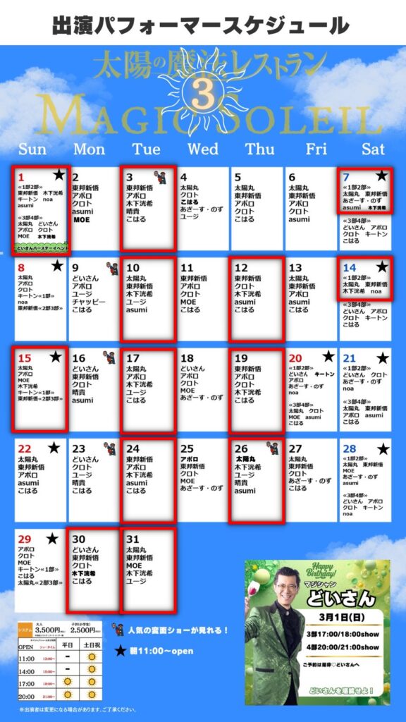 ●太陽の魔法レストラン マジックソレイユ(定期出演)
