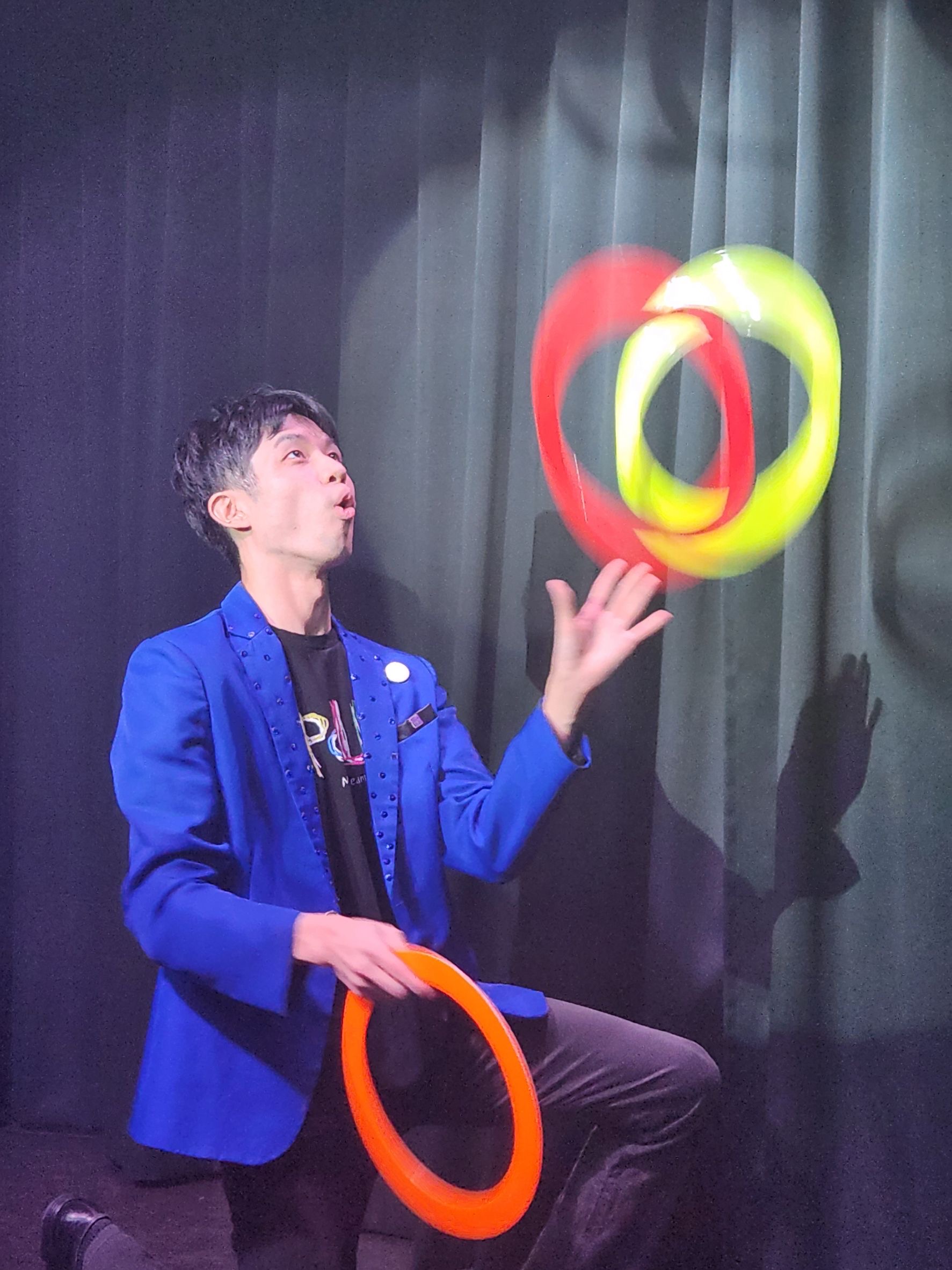 僕はいつも披露しているリングジャグリングの最初にリングマジックをやったりしました笑
