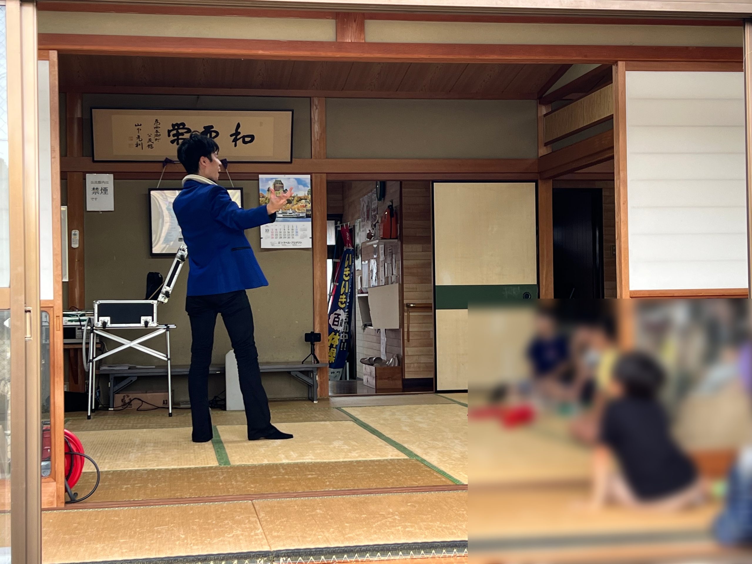 僕は公民館の中にてジャグリングショーをお届け!